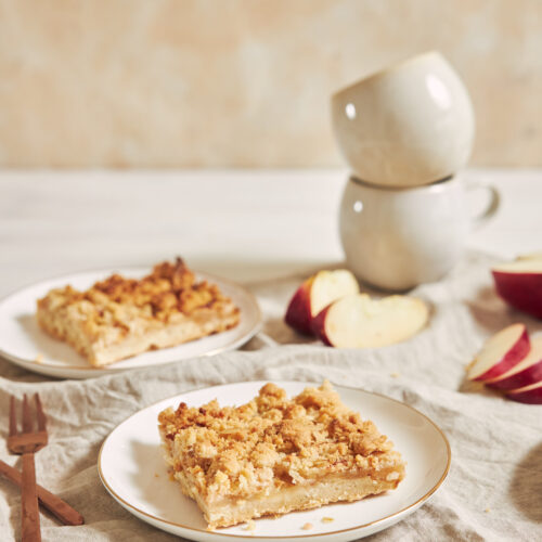- Maak de appelvulling:Verhit de kokosolie in een pan en bak de appelstukjes kort met kaneel, gember, vanille, citroensap en ahornsiroop.Voeg eventueel maïzena toe als de vulling te vochtig is.Schep het mengsel in een ovenschaal.